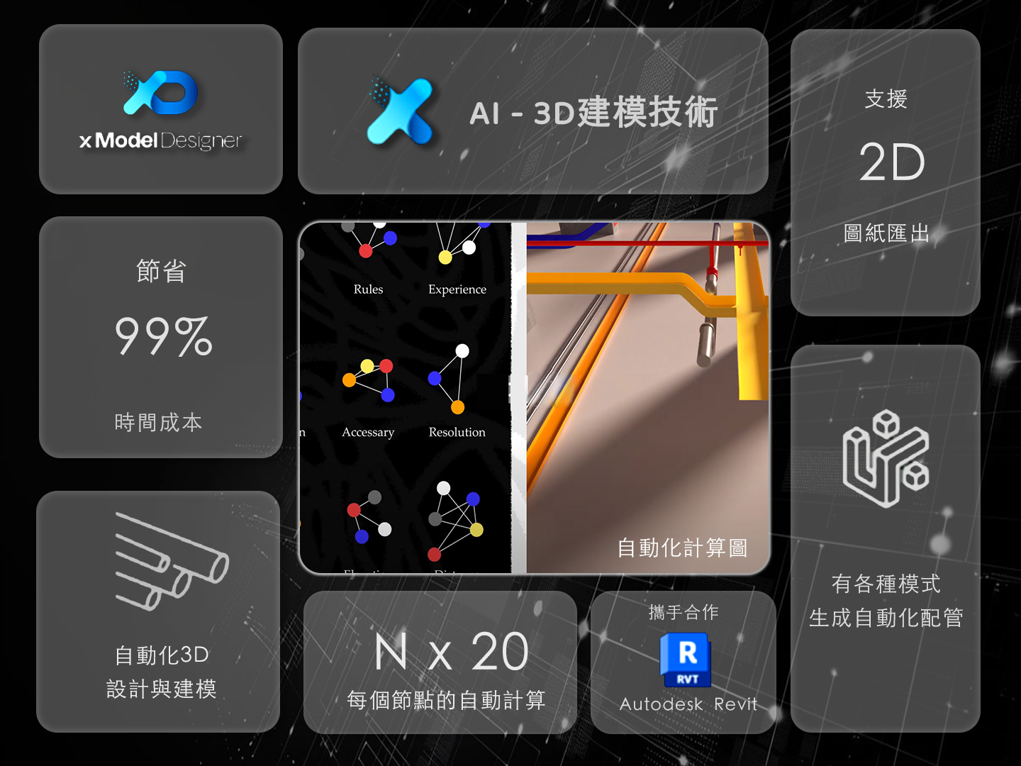 在建築數位化轉型的浪潮中,萃思科技以創新解決方案XMODEL DESIGNER,成功克服傳統 BIM 流程中的效率瓶頸,憑藉演算法與深度學習技術,實現設計自動化、最佳化與數位雙生的高度融合。BIM 作為建築物的虛擬化平台,可承載廠房設計中所需的各種數據並提供視覺化展示,但是隨著智慧製造需求的增長,面對更高精度的數位雙生模型需求,以及日益複雜的設計場景,BIM 在效率和衝突解決上,漸漸無法滿足智慧廠房的自動化和最佳化需求。因此,Autodesk 合作夥伴萃思科技用下一代 3D 模型技術,打造具自我排解能力的綠色智慧廠房,解決過去BIM建模的瓶頸,為產能擴廠需求做好準備。