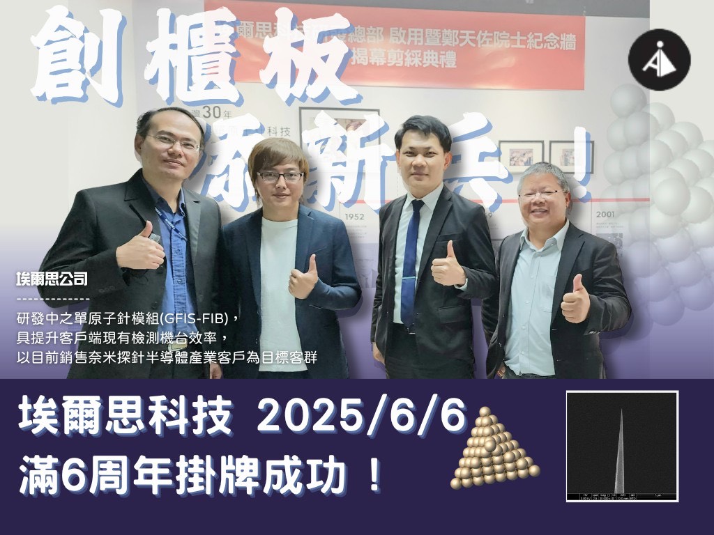 由前中研院物理所張維哲博士所帶領的埃爾思科研團隊,致力於新世代離子光源商業化的開發與應用推廣,團隊核心技術領先競爭對手且一路專注本業,創業前3年已陸續完成奈米碳針商業化,取得早期客戶的採購訂單。另外,亦獲得來自創投基金的早期天使基金投資與上市櫃公司產業CVC投資。最後在2023年獲得國發基金的肯定,成功獲得國發基金天使基金投資,是國內少數能將學術科研成果轉化商業應用的典範個案。